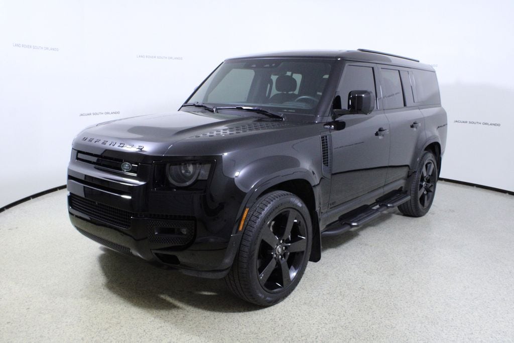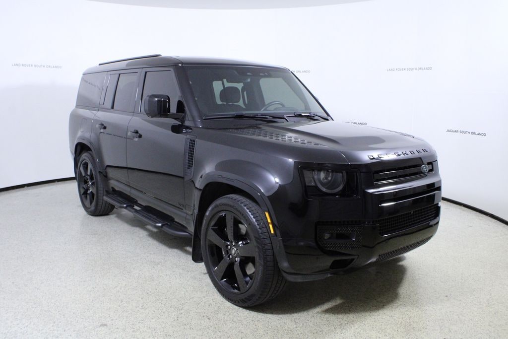 Clean CARFAX. CARFAX One-Owner. 4D Sport Utility Santorini Black Metallic 2025 Land Rover Defender 130 V8 AWD 8-Speed Automatic V8 Supercharged Extended Black Exterior Pack, Exterior Protection Pack, Wheels: 22" Satin Dark Grey Style 5098.