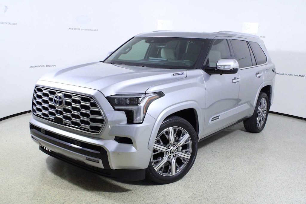 Leather Seats, Third Row Seat, Navigation, Sunroof, Panoramic Roof, Quad Bucket Seats, Power Liftgate, Rear Air, Heated Driver Seat, Heated Rear Seat, Cooled Driver Seat, Cooled Rear Seat, Back-Up Camera, Running Boards, Turbocharged. Rear Spoiler, MP3 Player, Remote Trunk Release, Keyless Entry, Steering Wheel Controls. Toyota Platinum with Celestial Silver Metallic exterior and Black interior features a V6 Cylinder Engine with 437 HP at 5200 RPM*.